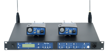 WBS UHF Synthesized Wireless Intercom Systems combine frequency agility and powerful features to maintain high audio clarity and reliability. UHF frequencies are ideally suited for operating through obstacles. A variety of remote antenna options can help improve range in difficult, interference-prone production environments. WBS base station supports a maximum of four full-duplex wireless beltpacks.