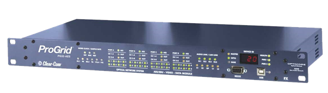 ProGrid Audio Network Solution transports, distributes and routes signals from the intercom, audio, video equipment—independent of manufacturer or brand—quickly, cost-effectively and easily over a fiber and IP network. ProGrid offers redundancy, robustness, and reliability for small to very large infrastructural requirements.The ProGrid family consists of several categories of devices: Analog Audio Converter Devices, Intercom Interface Devices, Digital MADI Interface Devices, ...