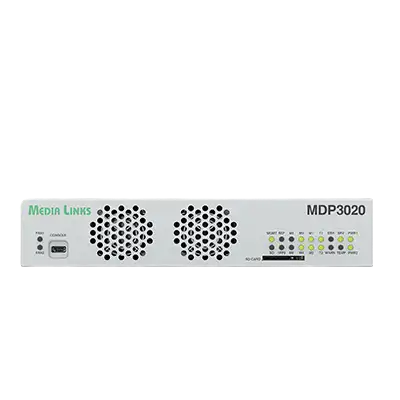 The Media Links MDP 3020 is an advanced, high quality standalone edge device, focused on addressing the needs of the broadcast media market. With insatiable demand for live content from all types of environments, the need for a portable, network protected, remotely configurable and cost effective edge device is huge. The MDP 3020 can process ever-increasing amounts of media information over IP networks, existing broadcast networks, as well as point-to -point fiber networks.
