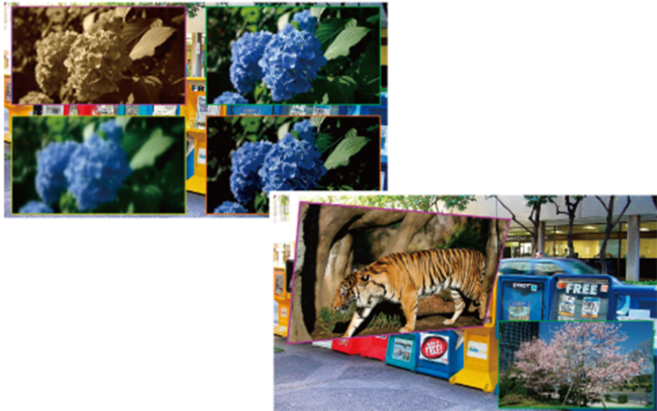 Choose from cut, mix, or wipe transitions. In addition to 100 wipe patterns, the switcher offers 16 useful 2.5D DVE wipes such as rotate, perspective and reposition. Also rich effects including mosaic, posterization, pseudo color and defocus are also provided.