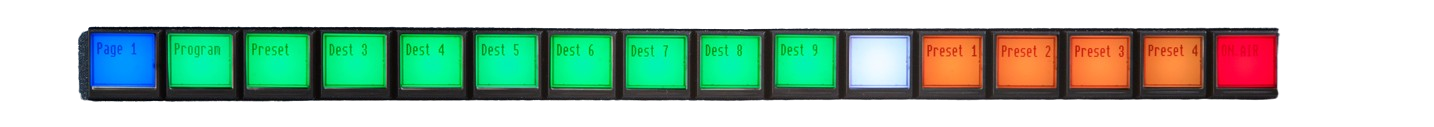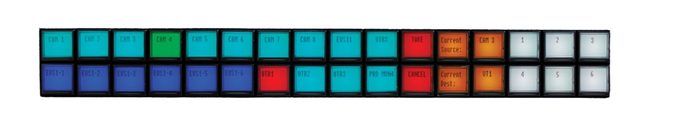 TSL’s range of control panels allows compact system-wide control. Each button is an LCD screen capable of displaying 16 characters or customised bitmaps. The TMCP-16 Control Panel is a 1U Control Panel with 16 TFT user-definable push buttons.